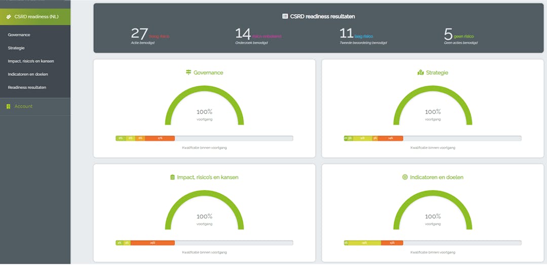 Wil je weten hoe goed jouw bedrijf is voorbereid op de CSRD en wat er moet gebeuren om te rapporteren? Doe dan een gap analyse met onze online tool. Hierbij worden bestaande initiatieven en documenten vergeleken met de algemene vereisten om de ontbrekende delen te identificeren en acties te formuleren voor verdere stappen. Naast de algemene zijn er ook specifieke CSRD-voorschriften. Die verschillen per bedrijf. Met behulp van een materialiteitsanalyse stel je vast over welke onderwerpen jouw bedrijf moet rapporteren.