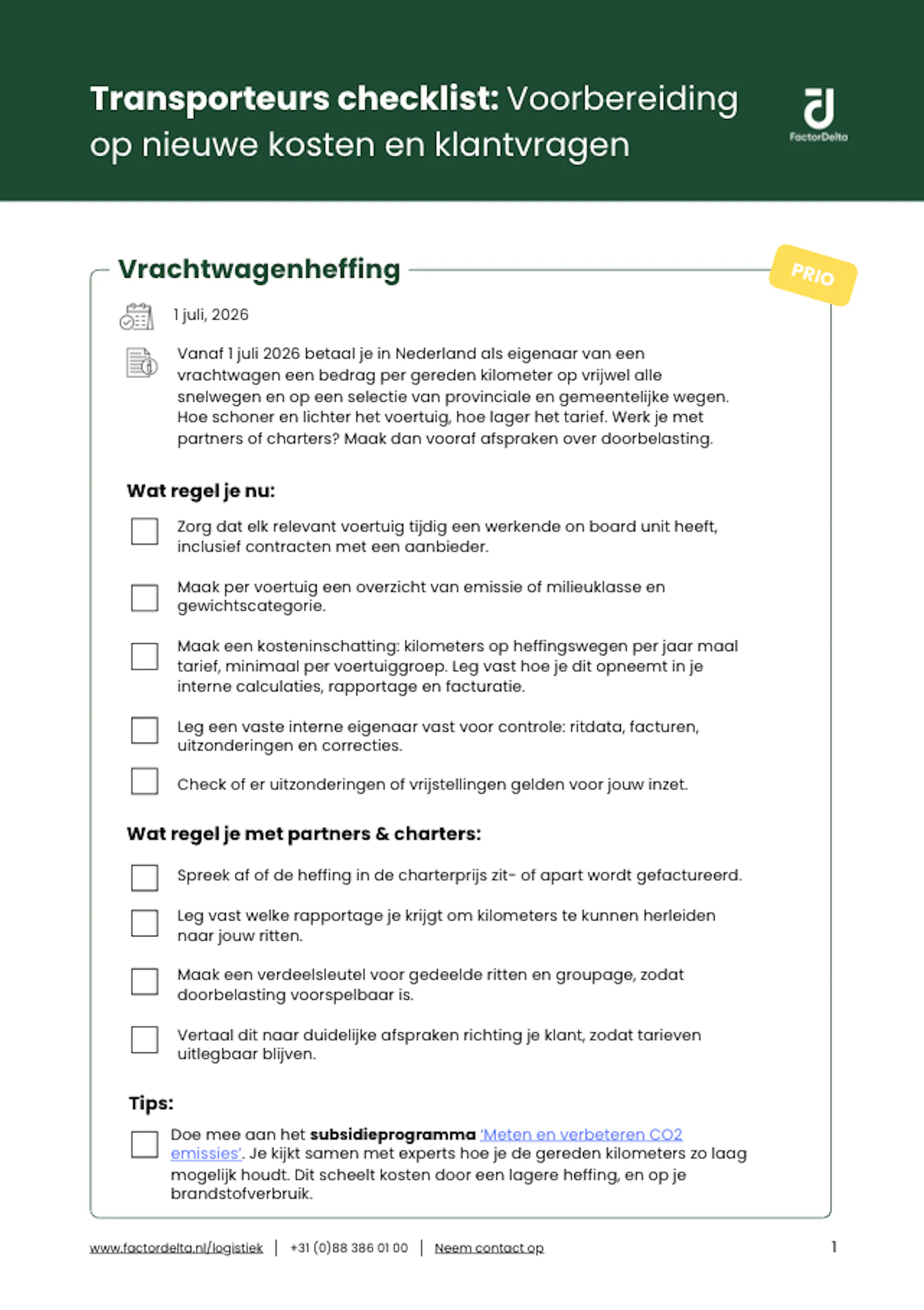 Transport Checklist (2026+): Voorbereiden op nieuwe kosten en klantvragen